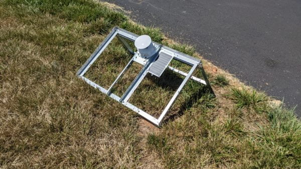 Another thing I didn’t notice until after I was looking at the mounted device was that the antenna was shadowing the solar panel! I thought everything would be fine because that half of the mount faces north, but the antenna’s shadow couldn’t have been more perfectly disrupting. It will be easy enough to relocate the solar panel on the mount before the final install.