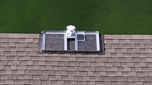 Luckily I’m using a roof mount that was designed for much larger antennas than the one I am using, so I am not worried about stability. I did a test mount on the dock roof because it would be easy to observe there.